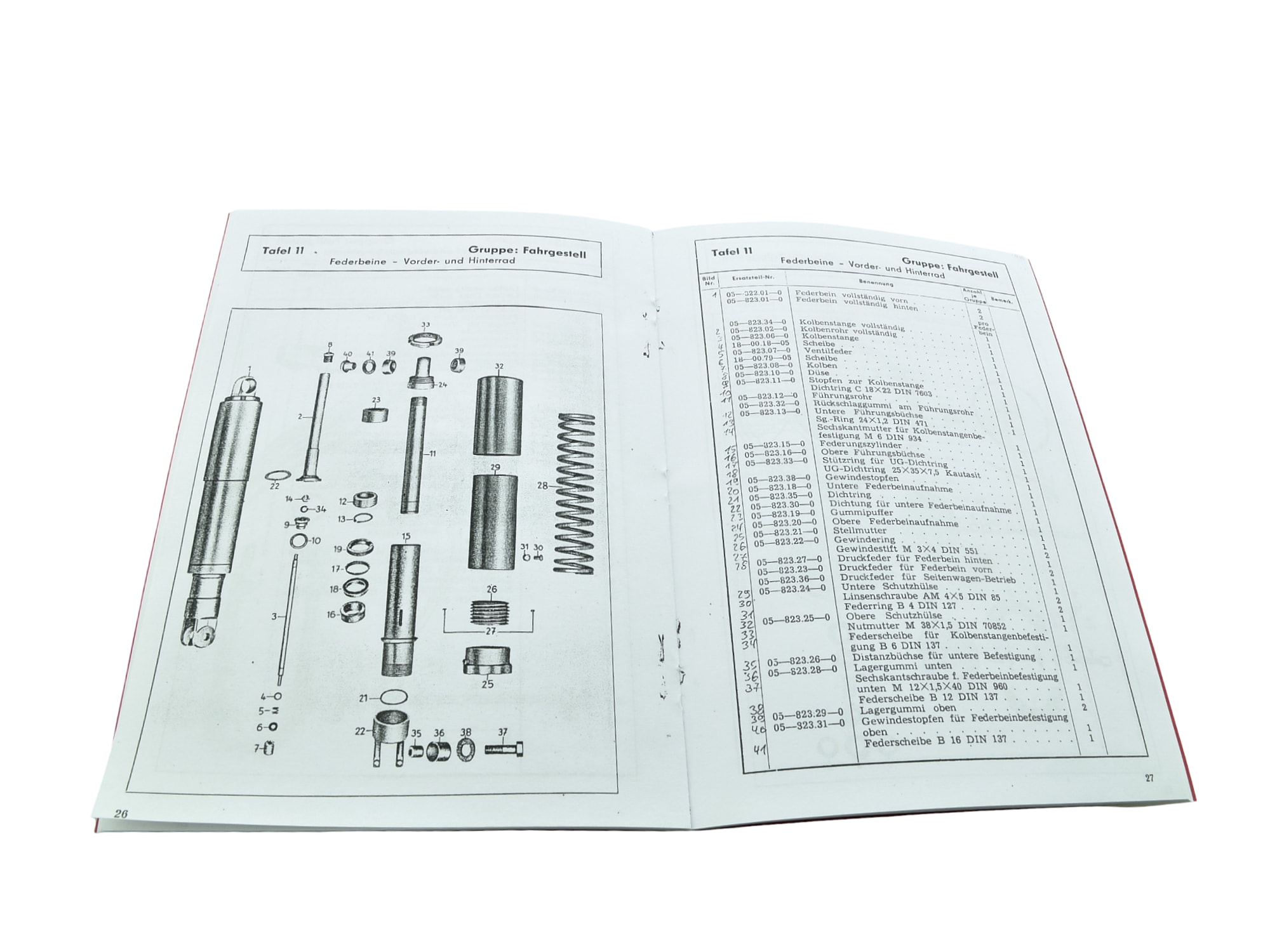 Ohne Abbildungen, dafür vollständige Teileübersicht und Originalbezeichnungen