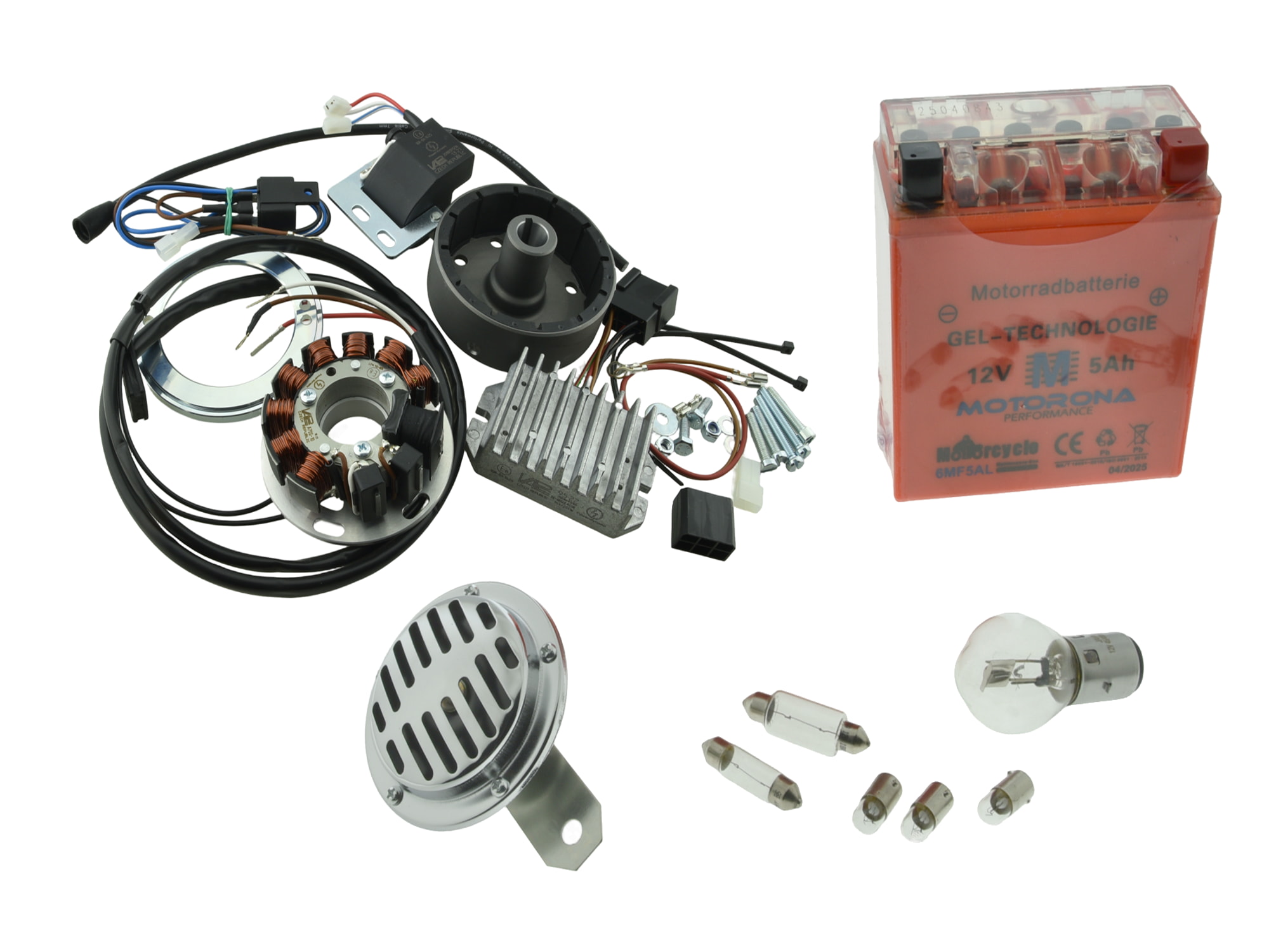 Die Anlage arbeitet kontaktlos, ist wartungsfrei und besitzt eine eigene Stromversorgung, sodass der Motor auch ohne Batterie betrieben werden kann. Die Ladekontrolllampe wird unterstützt (im Gegensatz zum alten 6-Volt-System). Einbauanleitung liegt bei.