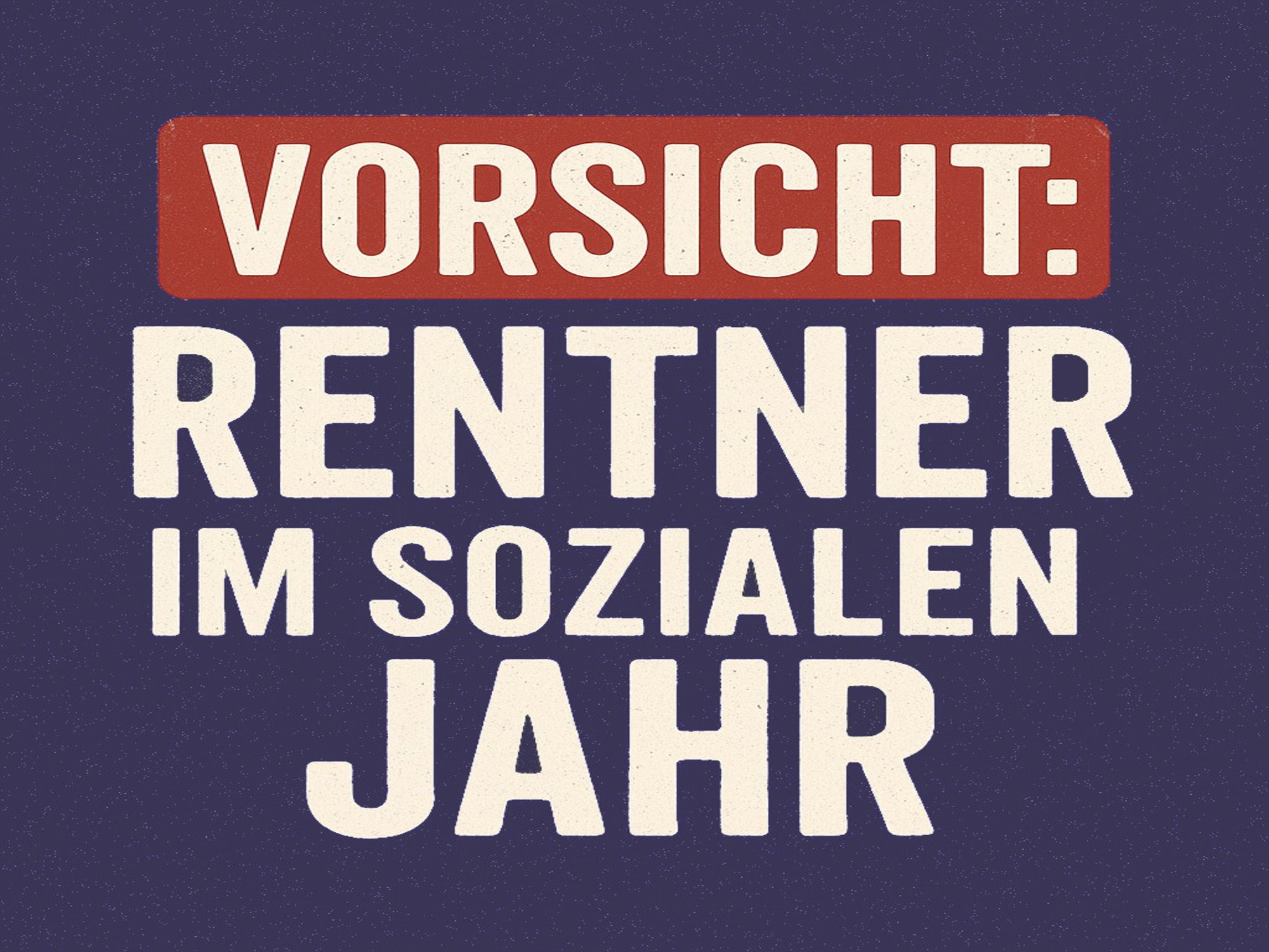 Aufdruck: „Vorsicht: Rentner im sozialen Jahr“ (weißer Schriftzug auf der Brust)