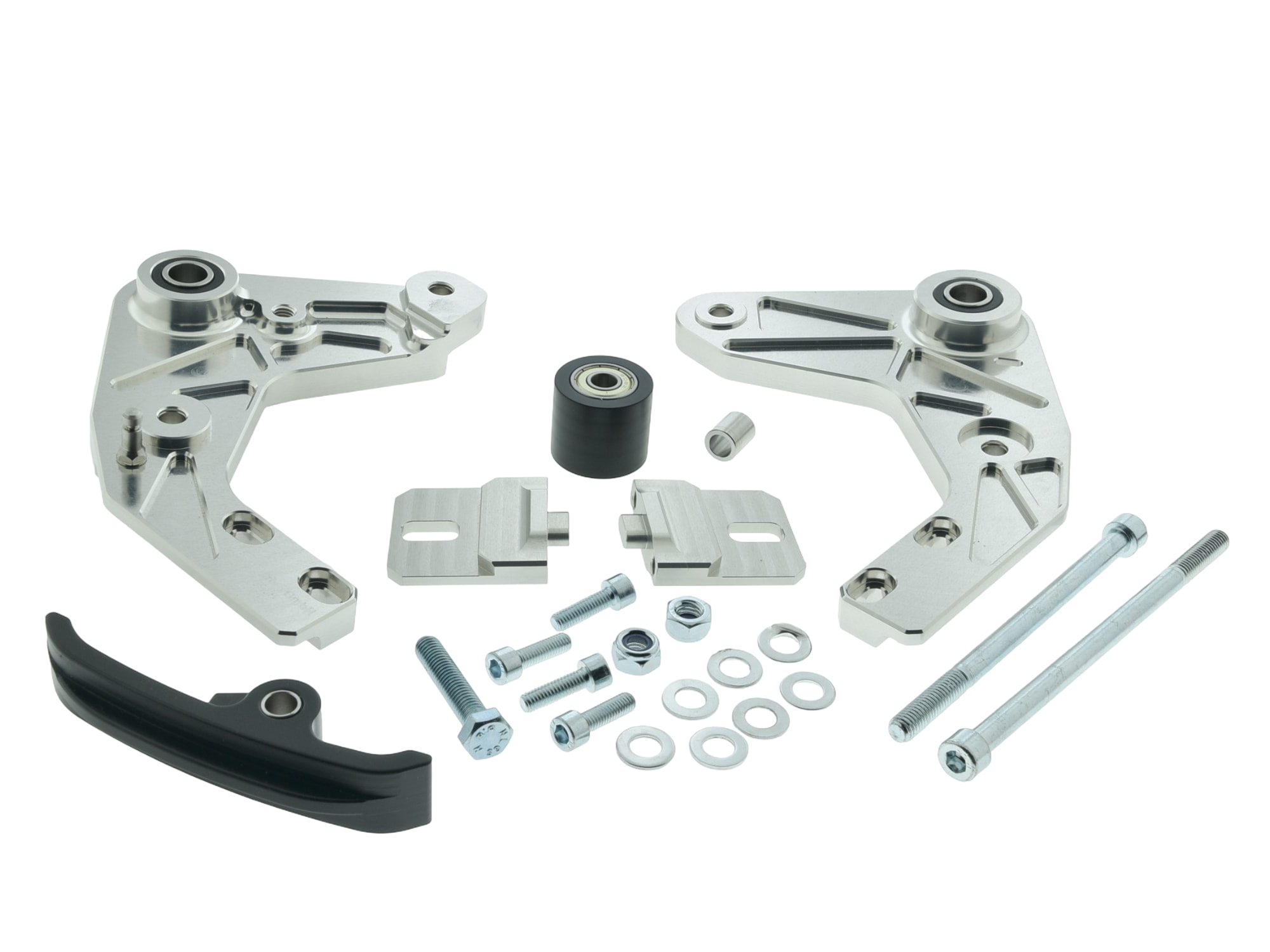 Gefertigt aus massivem Aluminium, mit gehärteten Stahlbuchsen und verstellbarem Schlitten, bietet dieser Halter absolute Stabilität, Flexibilität und Haltbarkeit – sowohl auf der Straße als auch auf der Rennstrecke.