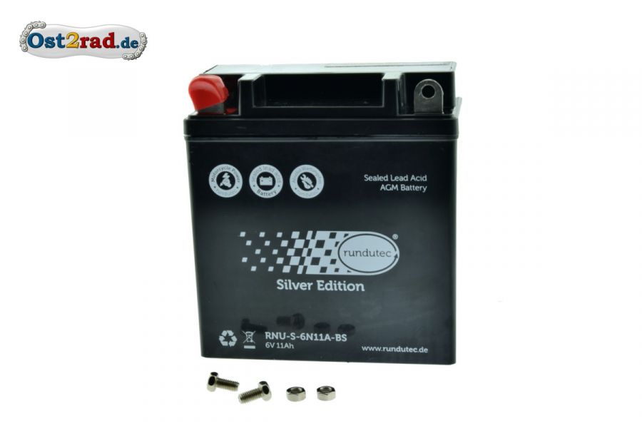 Neue Gelbatterie, Spezialanfertigung mit Originalmaß. Diese ist passend für MZ TS250, TS250/1, ES175, ES175/1, ES175/2, ETS125, ETS150, ETS250, ES250, ES250/1, ES250/2, ES125, ES150, TS125, TS150 und Simson Mokick S50, S51, S53, Roller SR50 und baugleiche Typen. Der Akku ist voll geladen und sofort startklar. Dieser Akkumulator ist wartungsfrei, hat eine sehr hohe Lebensdauer und ist in jeder Position einbaubar, da auslaufsicher.